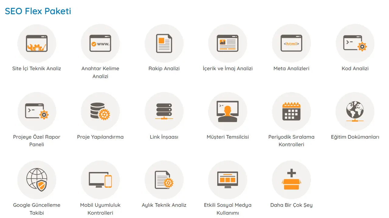 SEO Flex paketimiz en düşük hacimli çalışmayı içermektedir. Bu paketimizi yüksek rekabeti olan ve sürekli çalışma gereken projelerimizde, Advanced Plus ile sağladığımız ilerleme sonrasında sürekli bir çalışma olarak önermekteyiz. Bu çalışmadaki temel amacımız, alınan sonuçları korumak ve projelerde sürekli bir trafik artışı sağlamaktır. Devamlı siteniz ile ilgili çözüm üreten, geliştirmeler öneren, popüler kılan bir paket olarak Flex paketimizi düşünebilirsiniz. Her ay yoğun olarak analiz yapılmadan, gerekli durumlarda, gerekli analizler ve kontroller yapılarak çalışma devam etmektedir. Bu nedenle direkt olarak bu paketle başlamak yerine, devam çalışması olarak önerilmektedir. Bu paket öncesinde, sitemizi sağlam temeller üzerine alarak, kritik tüm eksikleri ve hataları belirlemek, daha sonrasında ise bu paketimiz ile çalışmalara devam etmek, bize başarı ve kalıcılık getirmektedir.